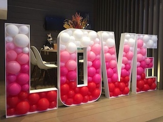 - Романтические надписи из фольгированных шаров;