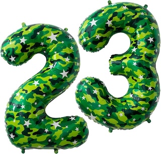 - Тематику 23 февраля: шары в виде звезд, военной символики, камуфляжных оттенков и строгих цветов.