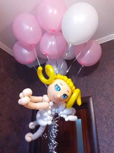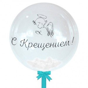 Баблс с белыми перьями и бантиком, с вашей надписью и Ангелочком на Крестины