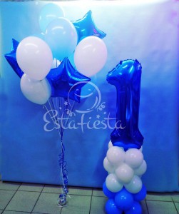 - 1 синяя фольгированныя цифра + подставка из 20 бело-синих шаров