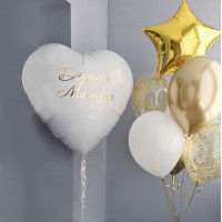 Состав:- большое белое сердце 91 см с надписью Дорогой мамуле;- золотая звезда 45 см;- 2 шара золотой хром 35 см;- 2 шара с конфетти 35 см;- 2 белых шара 35 см...