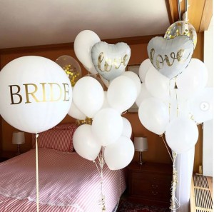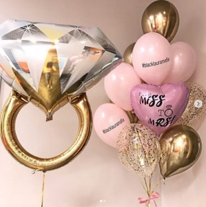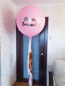 Большой розовый шар с индивидуальной надписью на ленте тассел на прощание с девичьей фамилией