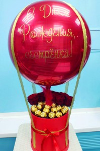 Композиция: Букеты, Живые цветы с шаром, Из конфет с шаром