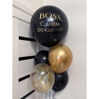 Состав:- большой черный шар с надписью "BOSS, с днём рождения";- 2 черных шара;- 1 шар с золотым конфетти;- 1 шар золотой хром.Надпись при желании можно изменить...