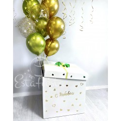 Состав:- большая коробка-сюрприз с индивидуальной надписью;- 3 салатовых шара хром;- 3 шара золотой ..