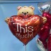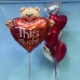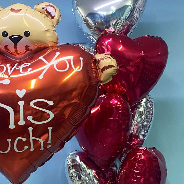 Фольгированный мишка I love you this much и фонтан из красных и серебряных сердец