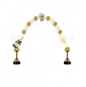 В состав фонтана входит фольгированный шар в форме бокала шампанского, 2 шара в форме звезды и 3 круглых шарика.