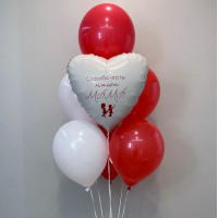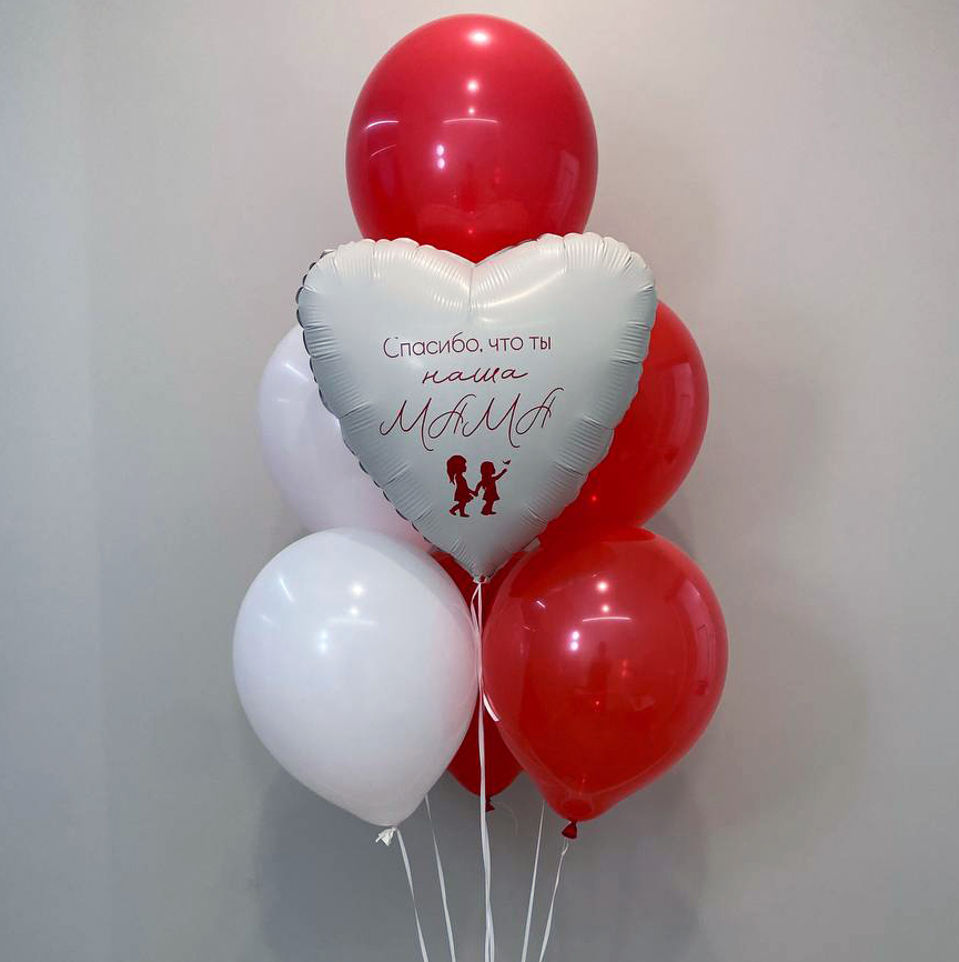 Состав:- белое сердце 45 см с надписью Спасибо, что ты наша мама;- 4 красных шара 35 см;- 2 белых шара 35 см...