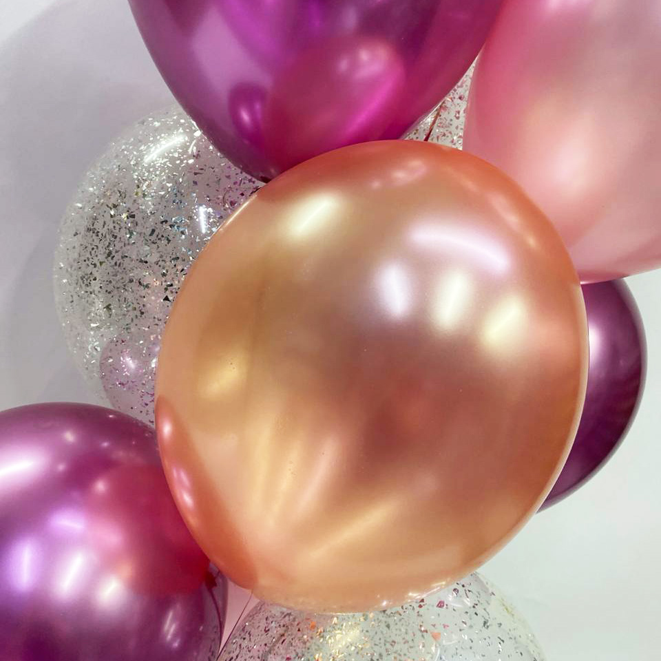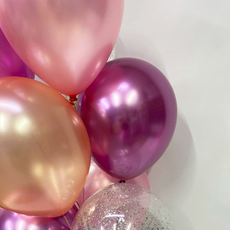 Состав:- сердце с индивидуальной надписью;- 3 шара с конфетти;- 1 розовый хромовый шар;- 2 хромовых шара розовое золото;- 2 шара розовый металлик;- 1 шар металлик розовое золото...
