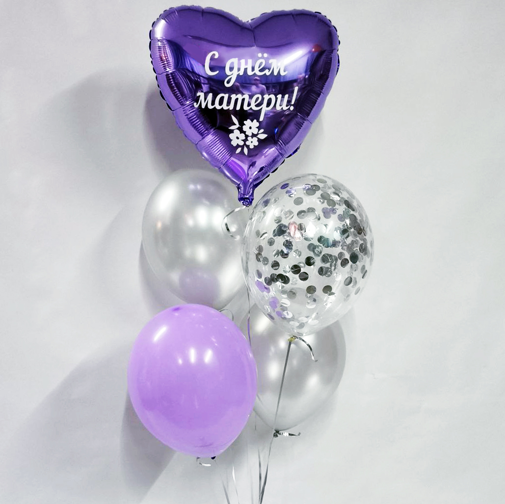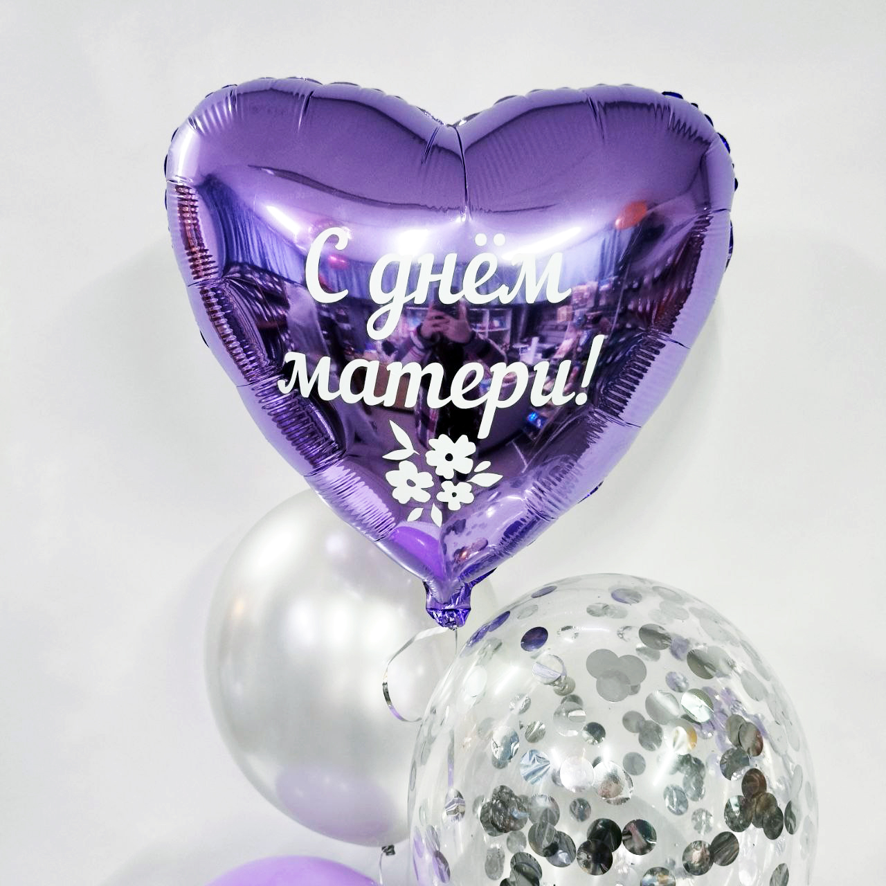 Состав: - 1 фиолетовый большой шар 60 см с надписью; - 1 золотое фольгированное сердце;&nb..