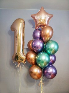 Стандартные шары с гелием и обработкой хром цвета розовое золото.
