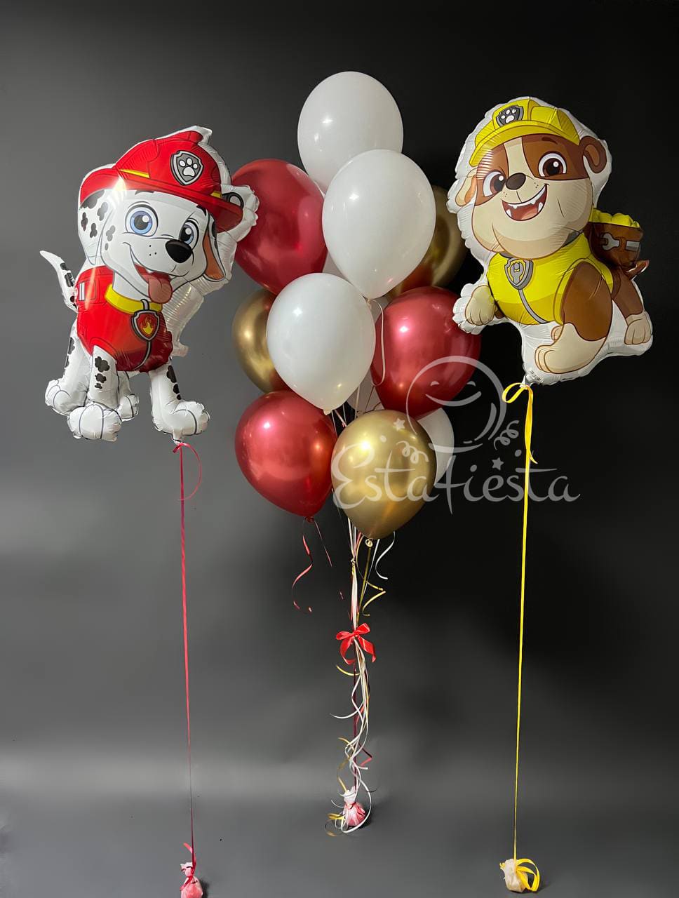 Состав:- Маршал;- Крепыш;- фонтан из 7 белых, 3 золотых и 3 красных шаров...