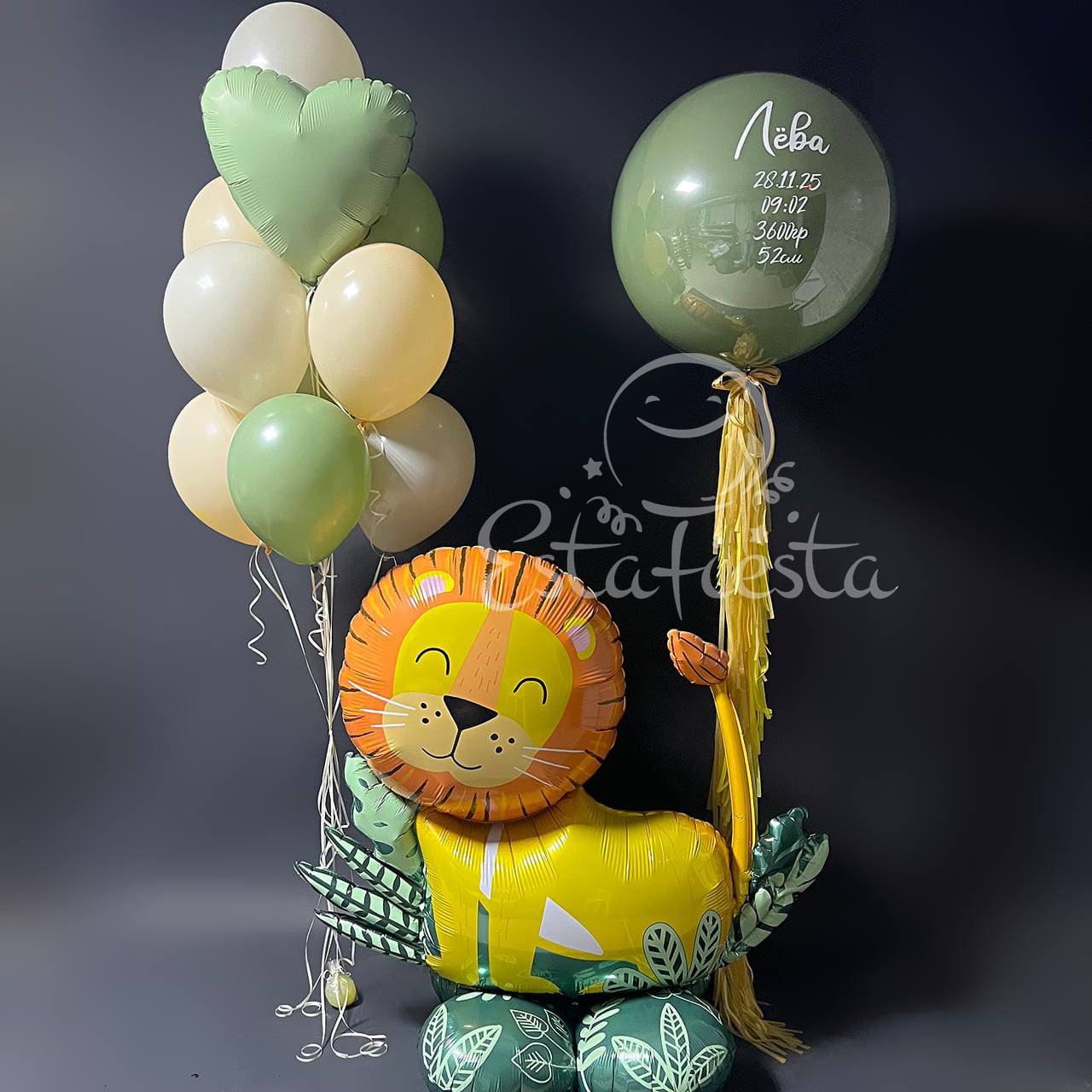 Состав: - большой шар 60 см с индивидуальной надписью; - львенок; - сердце 45 см с индивидуальной..
