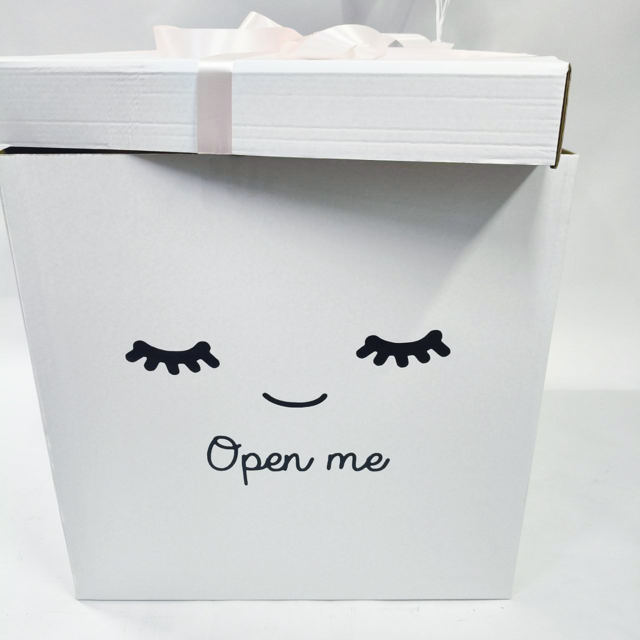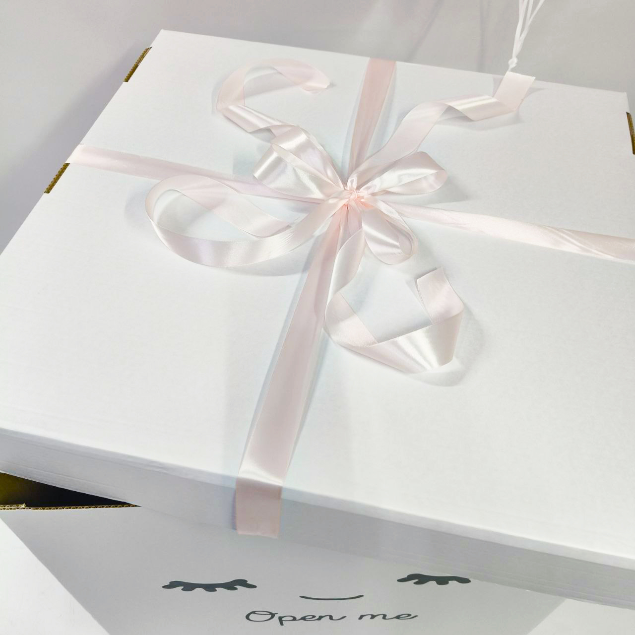 Состав: - 1 белая коробка с надписью и бантом; - 1 баблс с розово-белыми перьями и надписью;&..