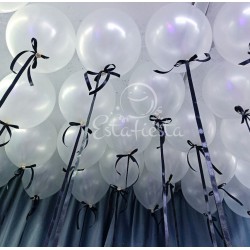 Набор из кремовых и белых шаров на черных лентах с цифрами