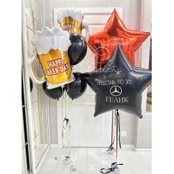 Состав:- Большой шар 60 см с надписью на тассел 1 шт- Связка гелиевых шаров ( 2 черных, 2 серебряных..