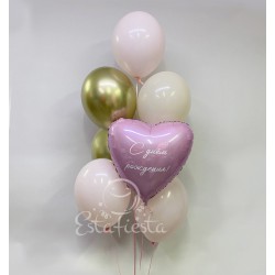 Состав:- сердце 46 см с индивидуальной надписью; - 2 шара 35 см золотой хром; - 3 шара 35 см розов..