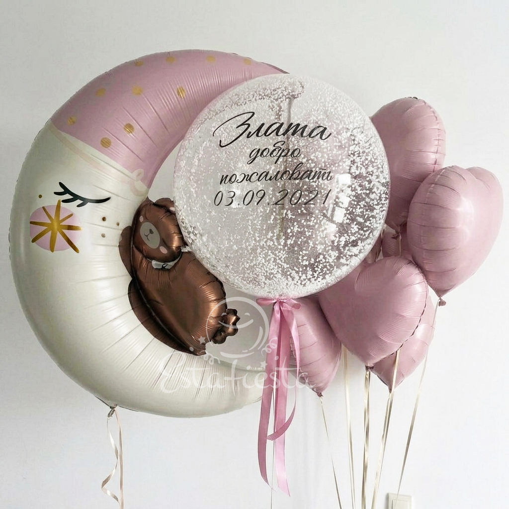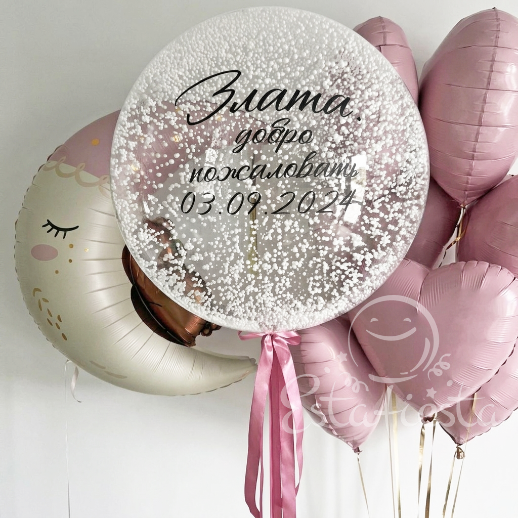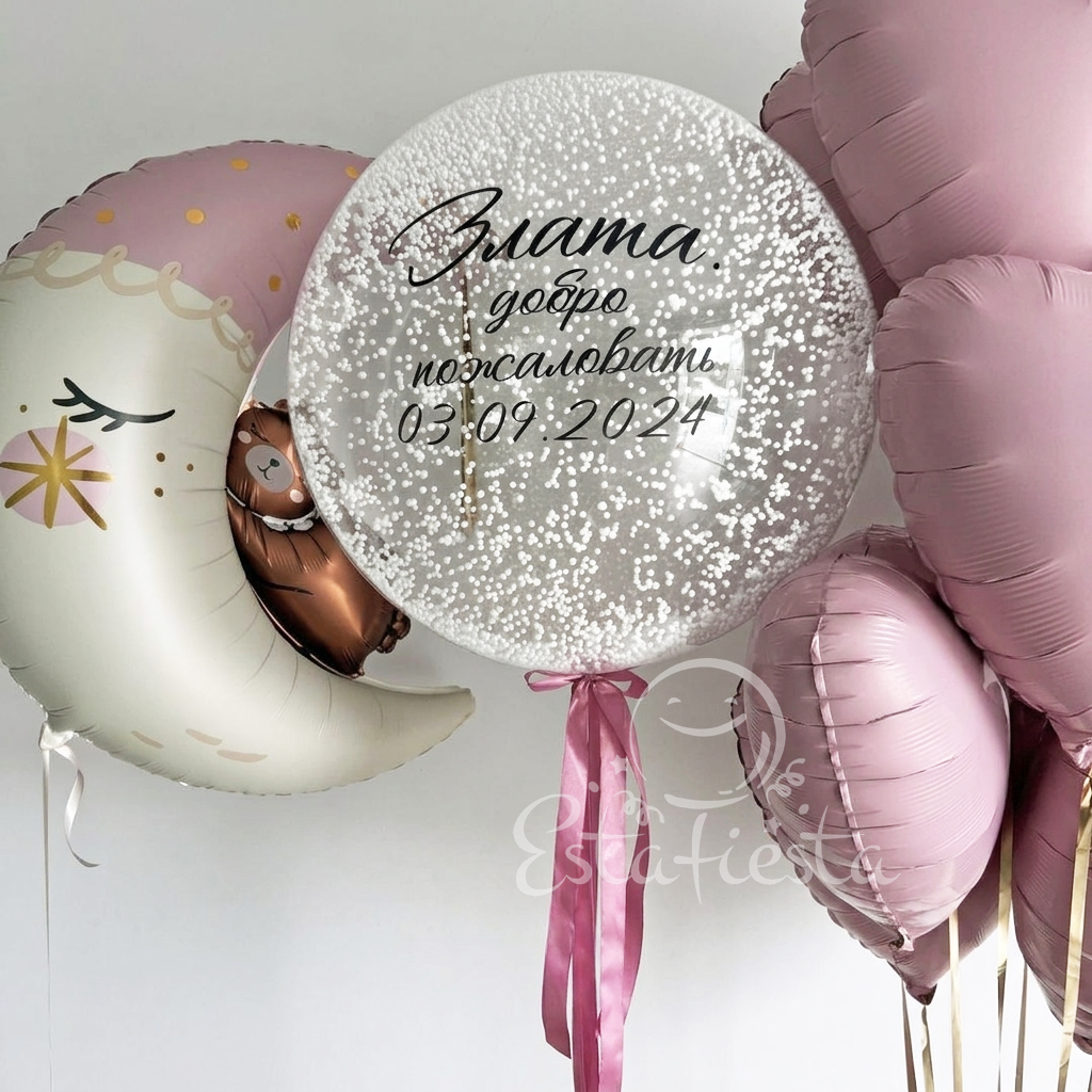 - большой именной шар с пенопластовыми шариками "добро пожаловать" (имя пишем Ваше);