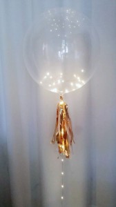 Оформление из баблс на светодиодной ленте теплого белого свечения