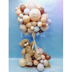 Состав:- плюшевый мишка;- облако из шаров с большим шаром с индивидуальной надписью;- подставка из ш..