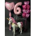 Оформление с большим единорогом и розовыми шарами