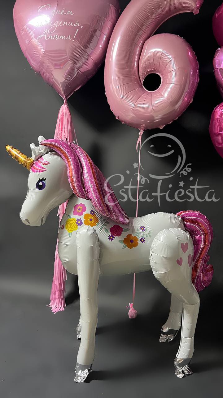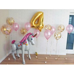 Состав: - 1 золотая цифра; - 1 "ходячий" фольгированный шар Единорог; - 1 баблс с над..
