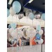 - под потолок шары на дождике: 4 голубых, 2 белых, 2 с конфетти, 2 серебряных шара.