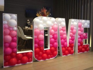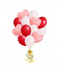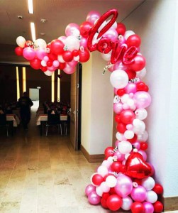 Красно-розовая разнокалиберная гирлянда в красных тонах с фольгированным сердцем и надписью