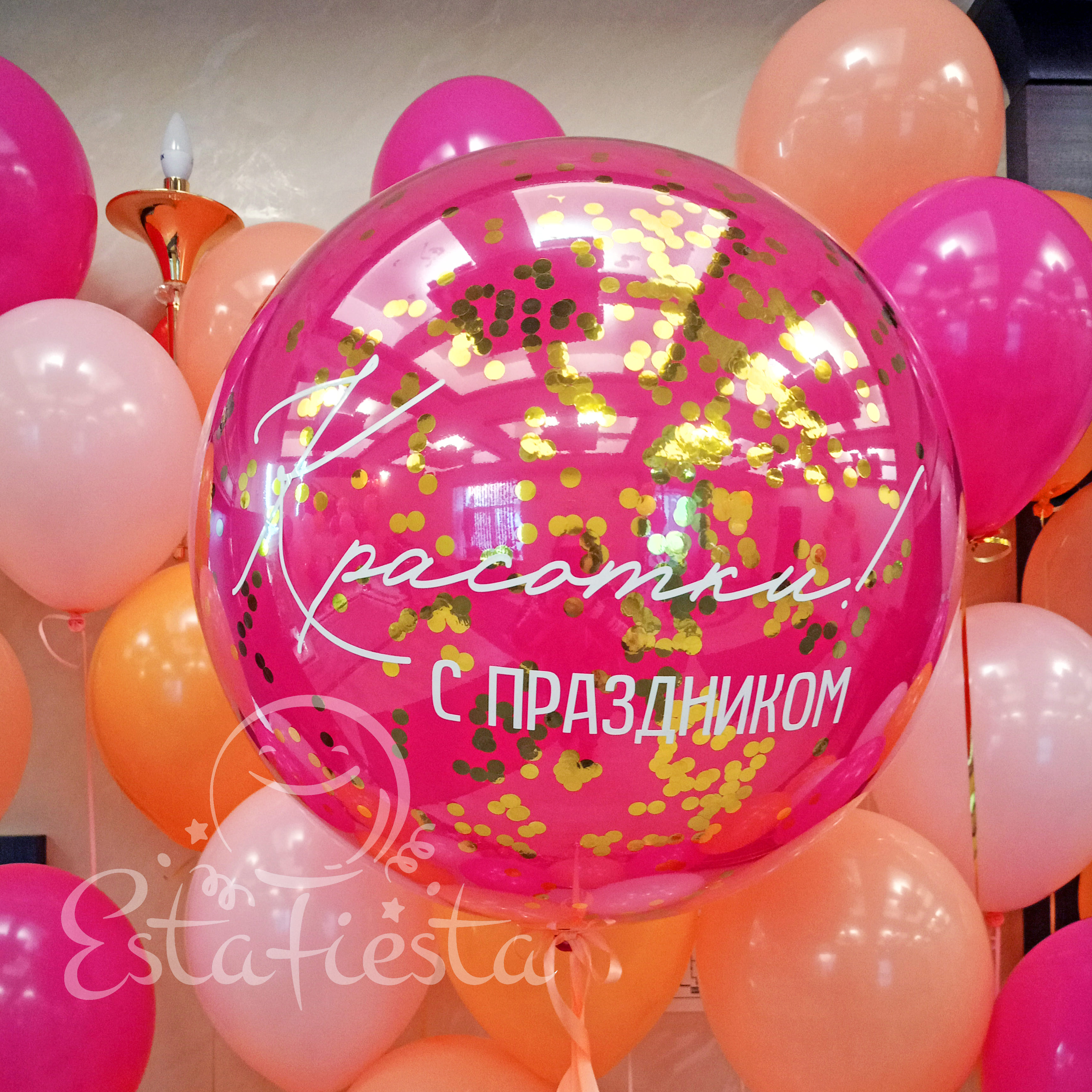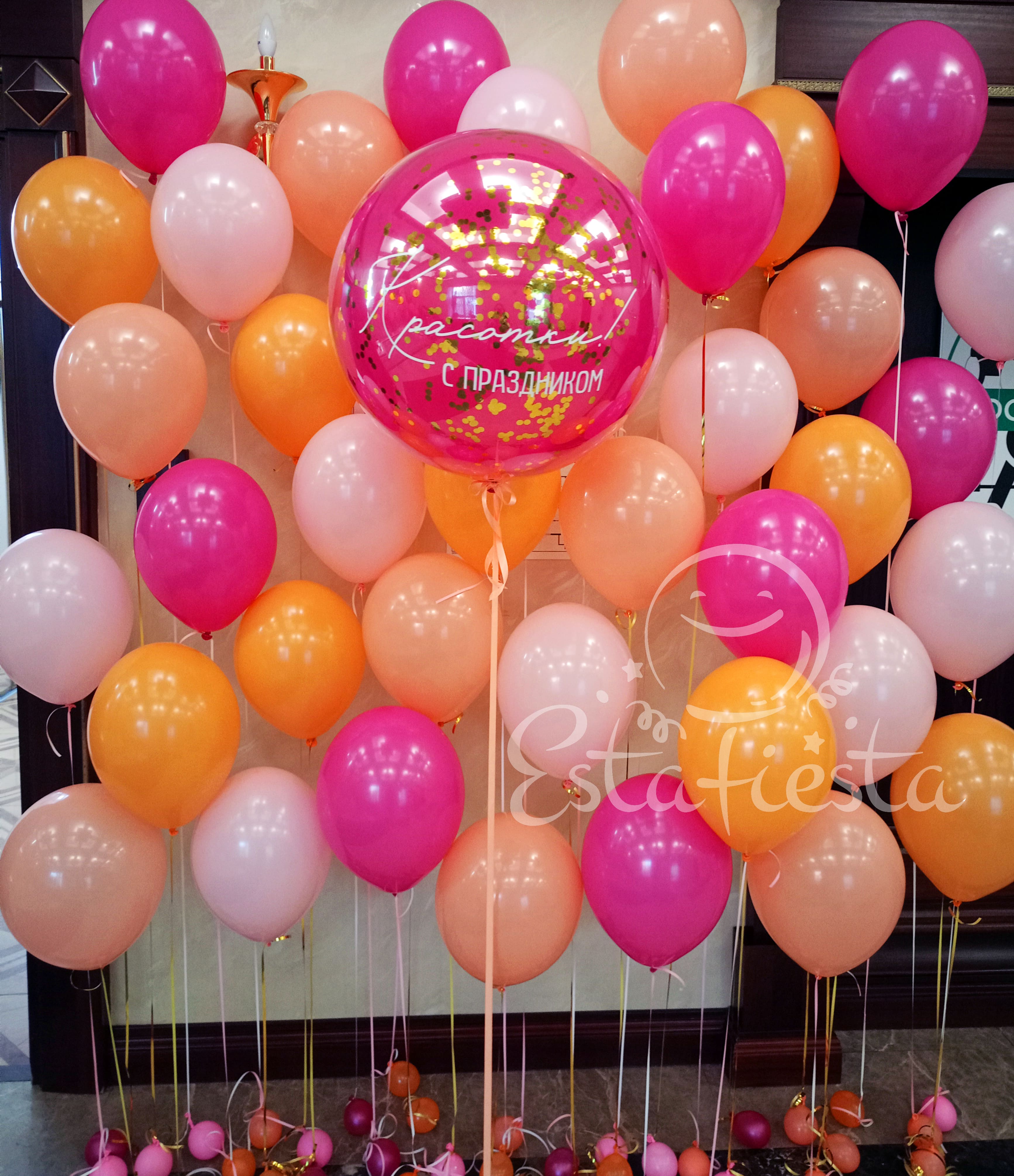 - большой шар с конфетти и надписью "С праздником, красотки";