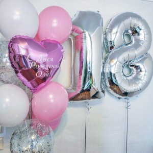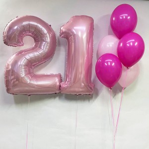 Состав: - 2 цифры 102 см; - 2 шара 35 см розовых; - 3 шара 35 см фуксия.