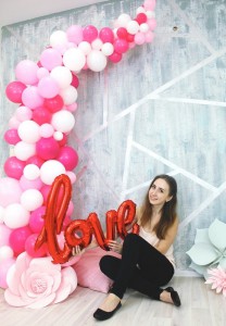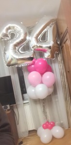 Розовые шары цифры и фонтан из розовых шаров на день рождения