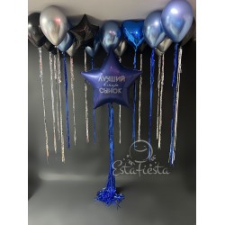 Состав:- большая синяя звезда сатин "Лучший в мире сынок" на синем дождике;- синее сердце под потоло..