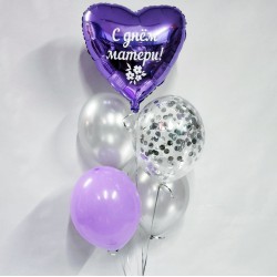 Состав: - 1 баблс с сиреневыми перьями и надписью; - 2 розовых фольгированных сердца; - 2..