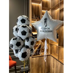 Состав: - 3 шара с черно-белым конфетти; - фольгированный круг в виде футбольного мяча; ..
