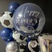 Состав:- большой "стеклянный" шар с индивидуальной надписью;- кубок;- цифра (выберите нужную в опциях; также можно выбрать вторую цифру);- фонтан из 3 фольгированных мячей, 4 синих и 3 серебряных шаров...
