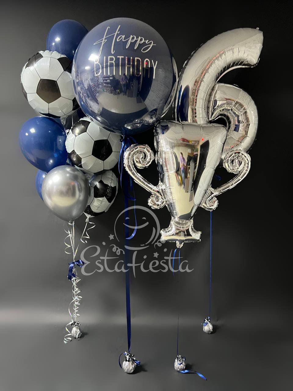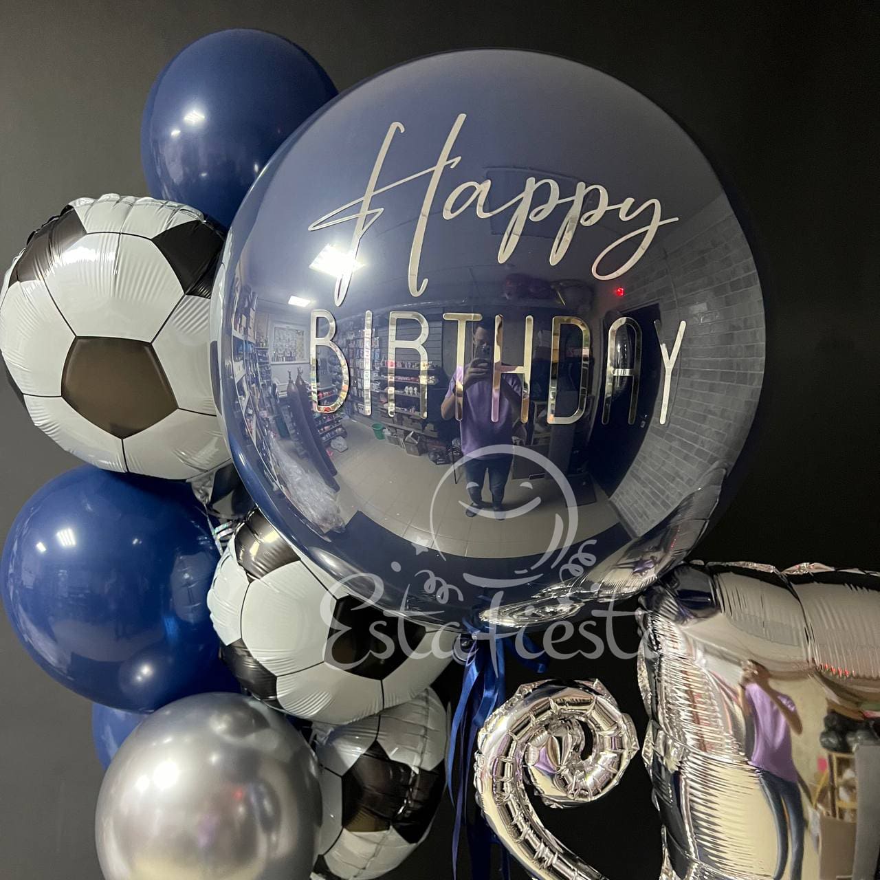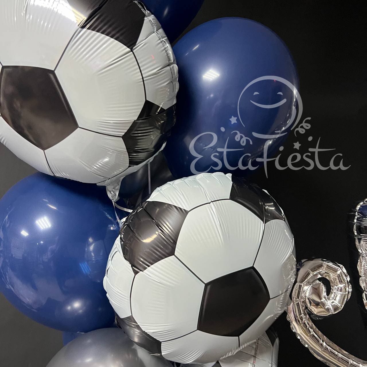 Стильная сине-серебряная композиция из шаров в стиле Футбол