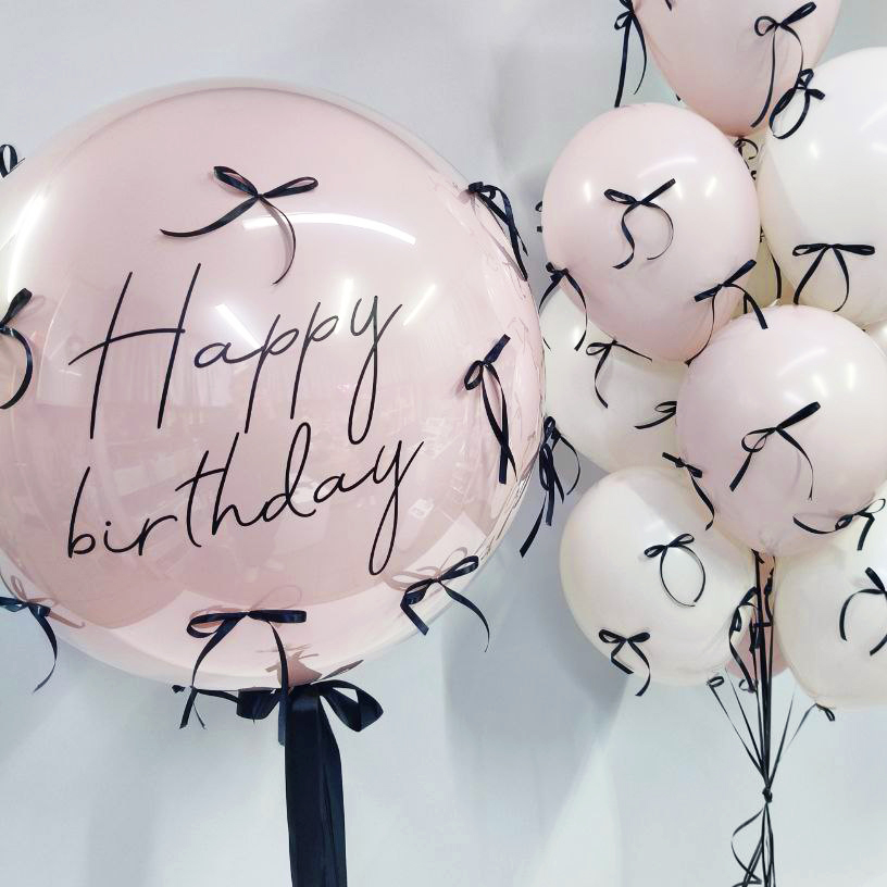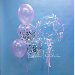 Состав: - шар баблс 60 см с бантиками; - 3 шара 35 см розовых перламутровых; - 3 шара 35 см в кон..